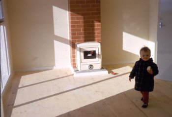 The main sitting room had a very efficient heater which was sufficient for the whole house. Paul Sawkins is in the photo. |