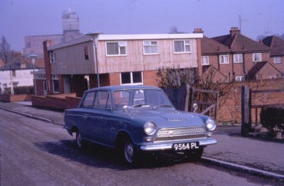 The Astolat pub next door with the Guildford Cathedral in the background. The car was bought by Roger Sawkins from his father, Frank.