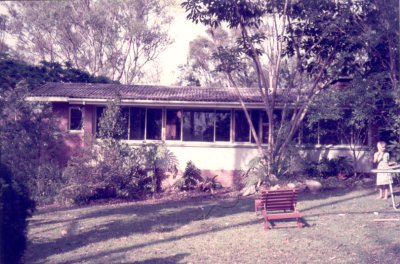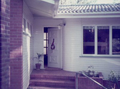 The side of the house, with the dining room to the left and a spare bedroom (which later became the kitchen) on the right. |