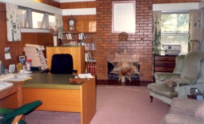 The "library" or "study" just before Roger Sawkins moved out. Note the open fireplace with the Quaker marriage certificate above it. |