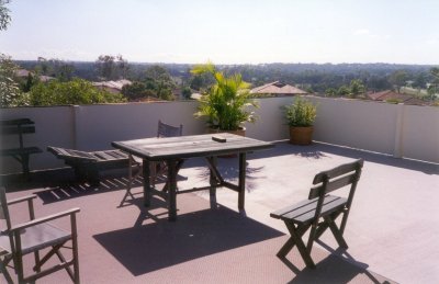 A view of the deck from the sliding lounge doors. |